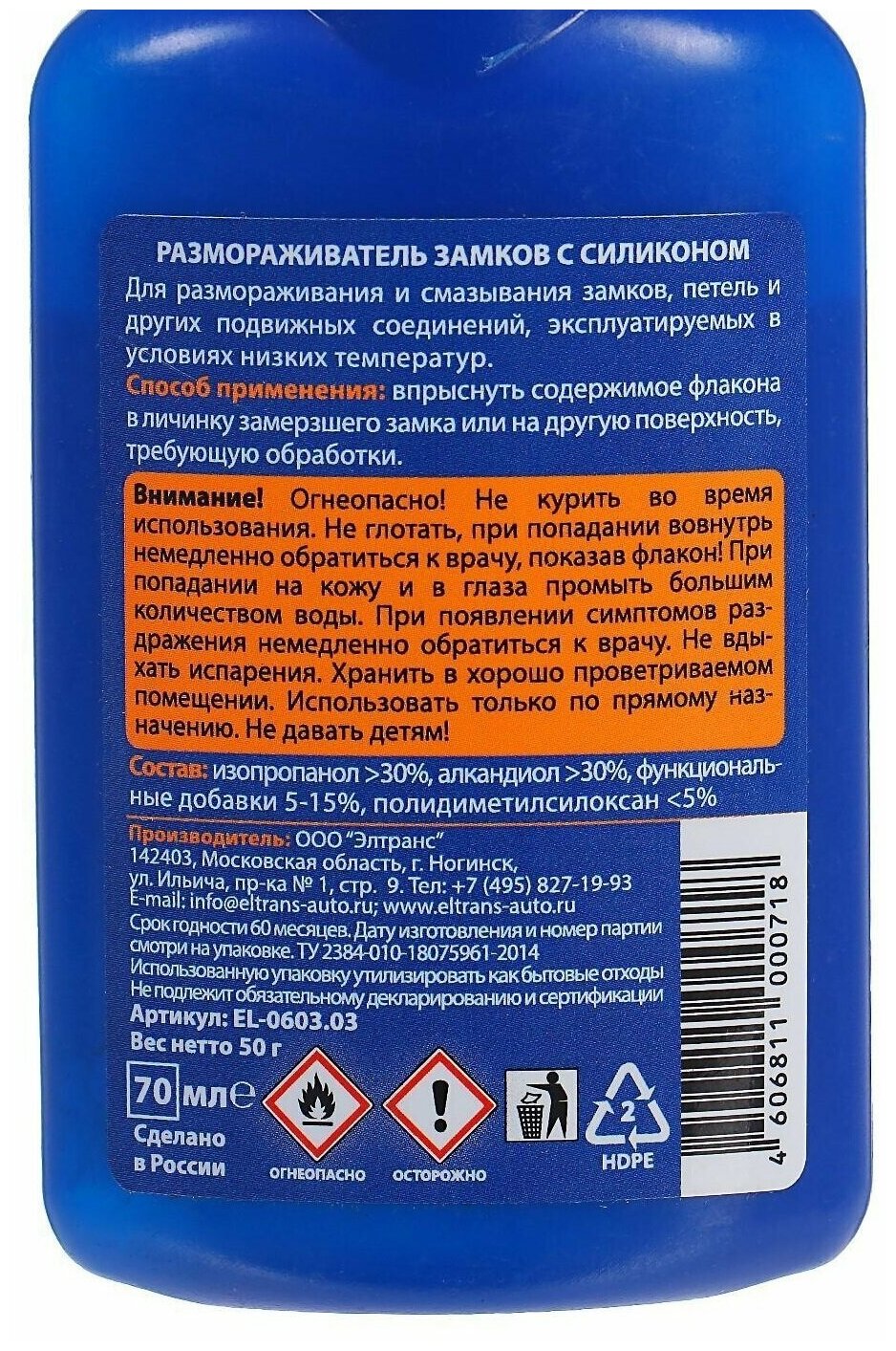 Размораживатель замков элтранс 70мл со смазкой, EL060303 Элтранс-Н EL-0603.03