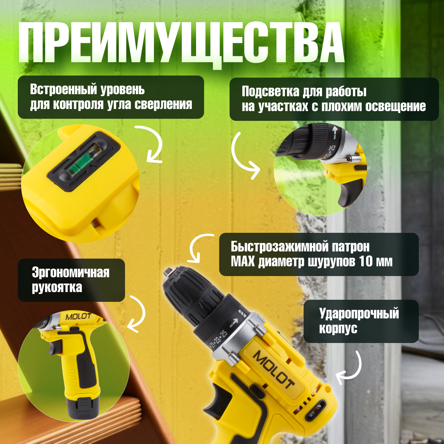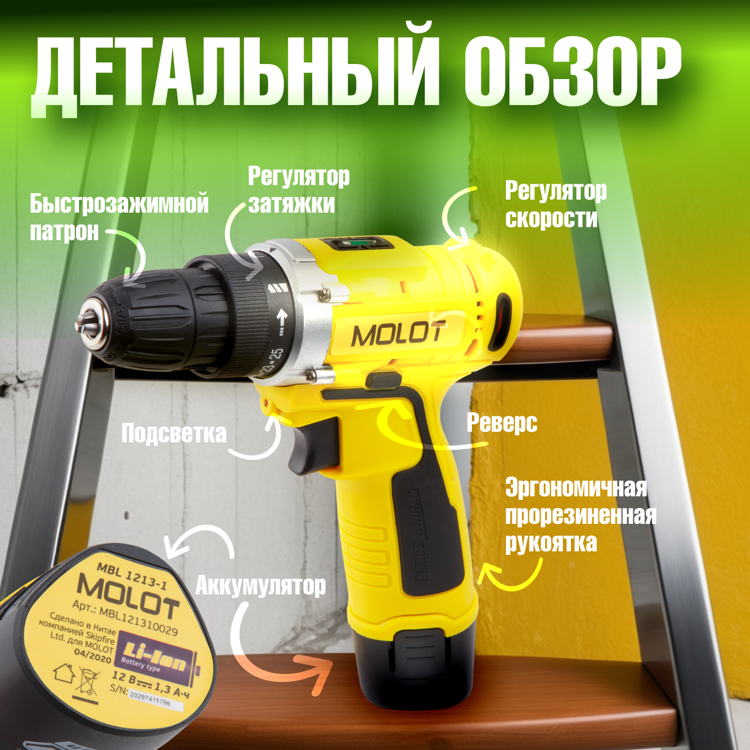 Отзывы на Дрель-шуруповерт аккумуляторная MOLOT MBD 1213-1 Li с АКБ и ЗУ (MBD12131Li0029)