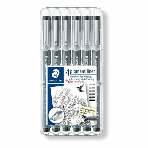 Набор капиллярных ручек Staedtler Pigment Liner в пенале, черные, 6 штук информация: