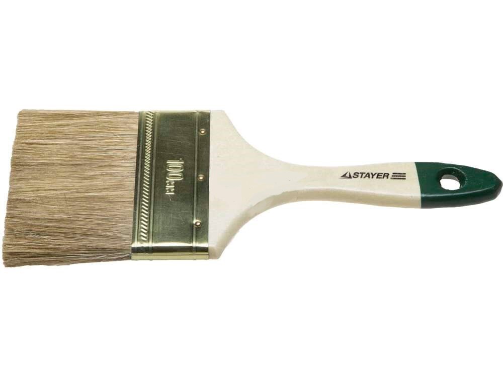 Плоская кисть STAYER Lasur 100 мм 4 смешанная щетина деревянная ручка (01031-100)