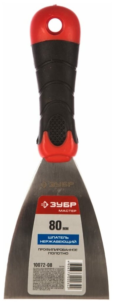 Шпатель ЗУБР ″Мастер″, профилированное нержавеющее полотно, 2к ручка, 80мм (10072-08) информация: