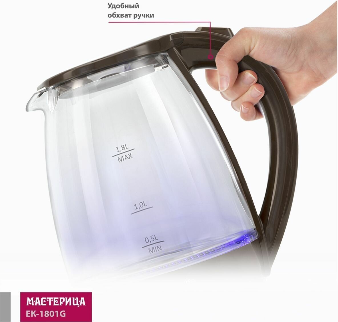 Мастерица Чайник электрический ЕК-1801G, шоколад, 1,8л, стекло, 1850 Вт 00-00016329
