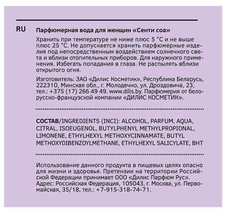 Парфюмерная вода Dilis Parfum Парфюмерная вода женская SENTI (Объем 50 мл) - Белорусская косметика