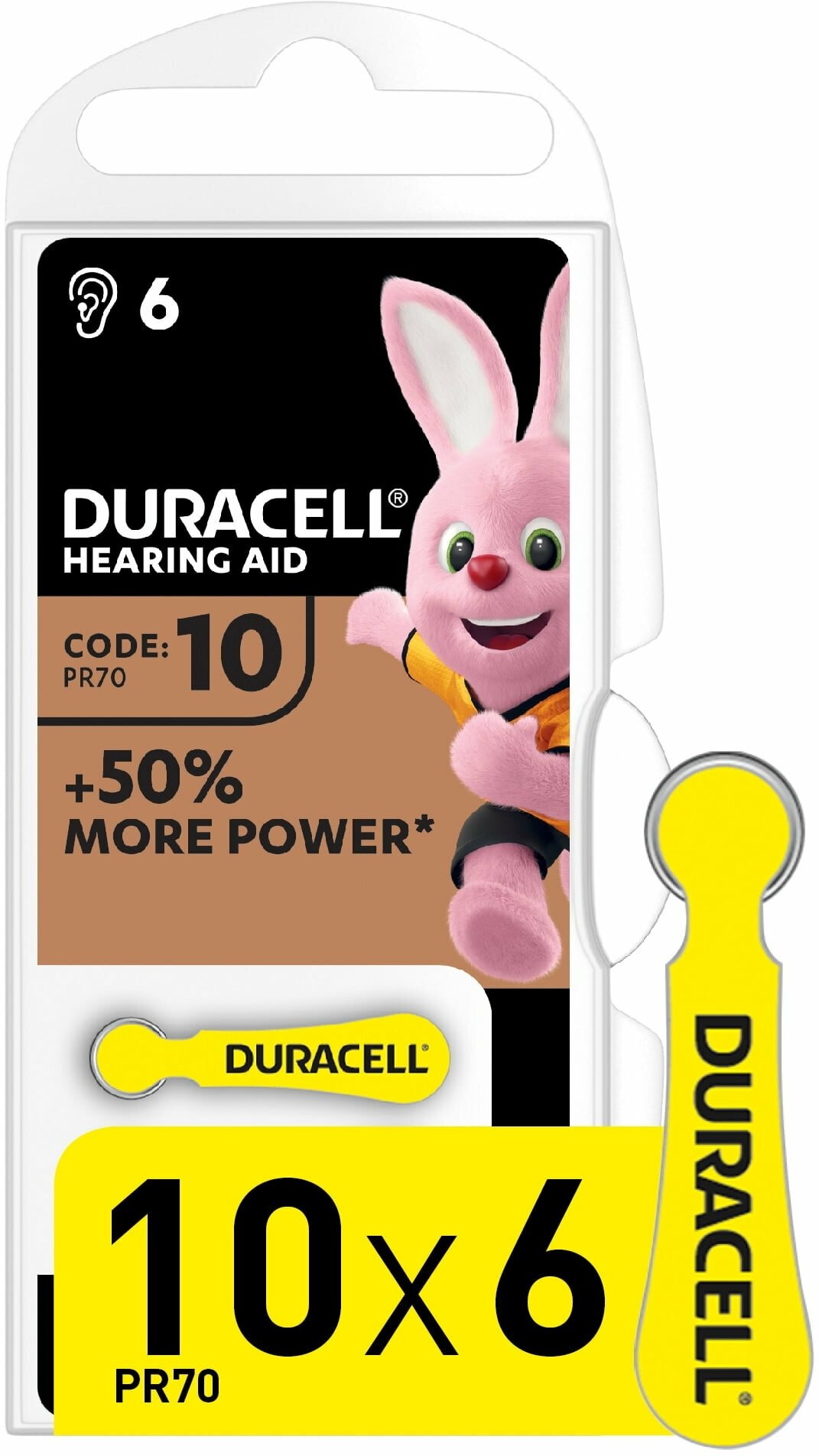 Батарейки Duracell Activair 10 (PR70) для слухового аппарата, 1 блистер (6 батареек)