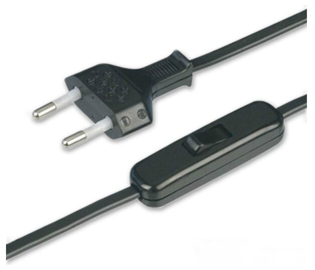 Провод КУМ с евроштекером и выключателем черный 2м. H 03 VV-F 2х0,75 мм² 2,5А