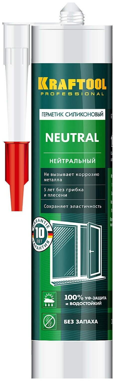 Герметик нейтральный силиконовый KRAFTOOL Neutral 300 мл прозрачный информация: