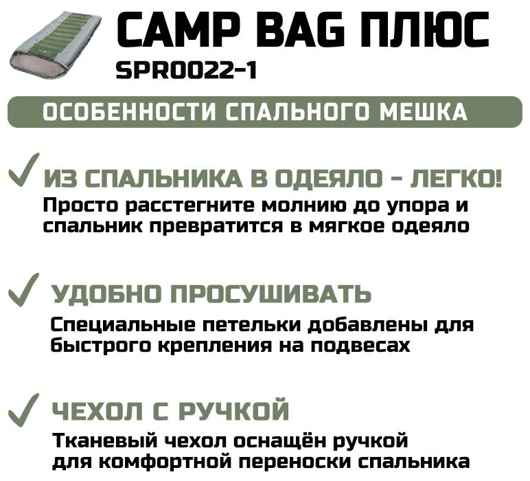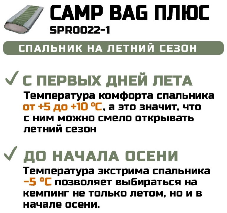 Спальный мешок одеяло Prival Camp bag плюс серый/зеленый, t extr -5 °С, 220х95, молния справа информация:
