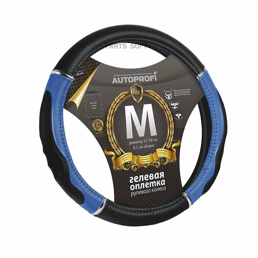AUTOPROFI GL1020BKBLM Оплетка на руль M "AUTOPROFI" гелевый наполнитель, черный/синий (хром-кольца, рельеф под пальцы)