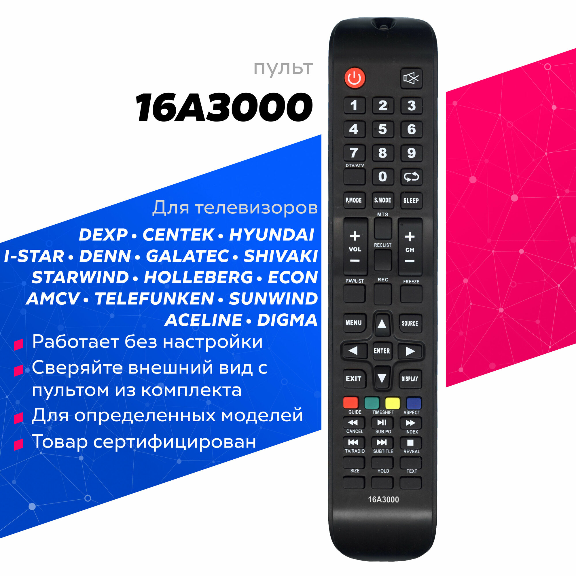 Пульт 16A3000 для STARWIND, econ и AMCV телевизоров (CX509-dtv) 348 ₽
