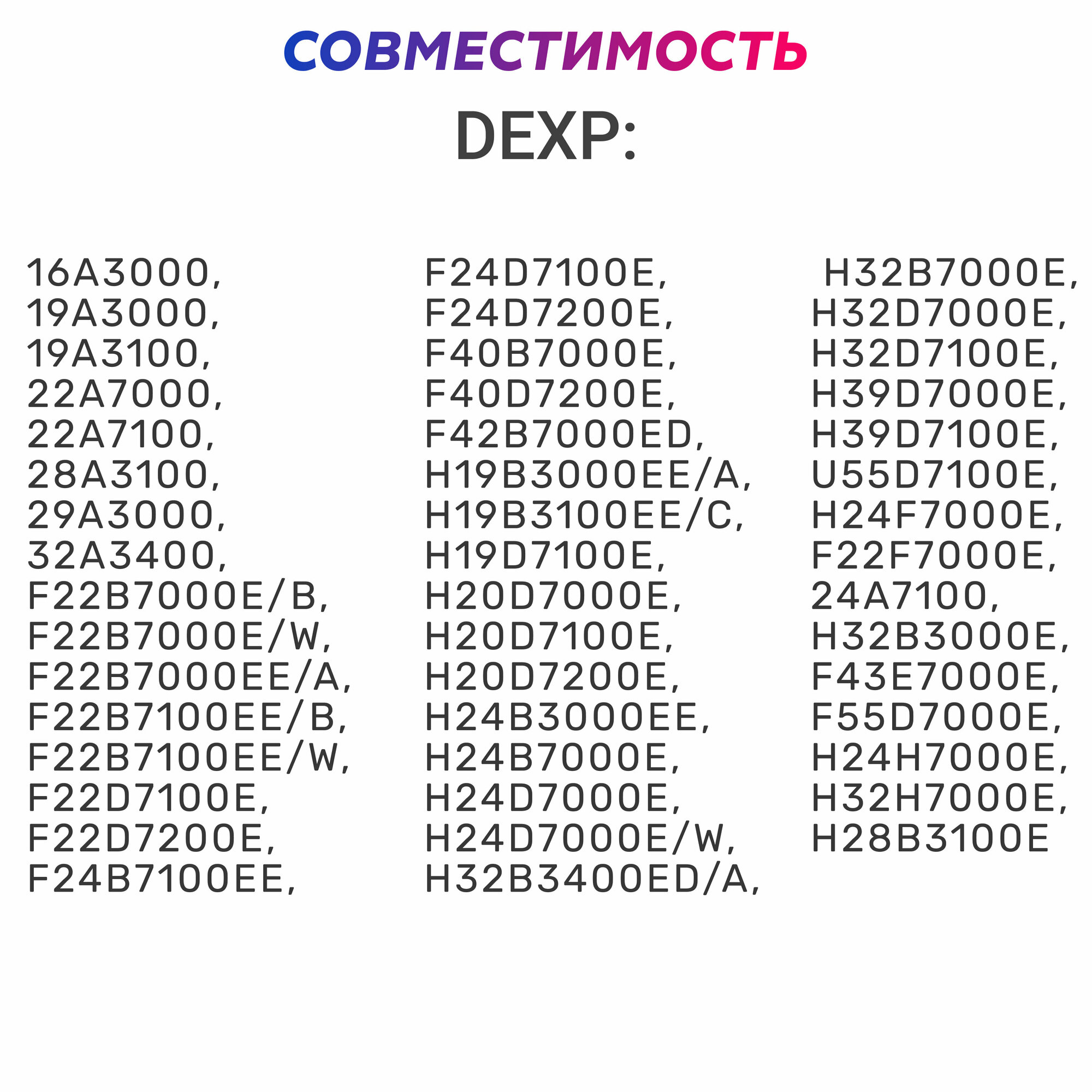 Пульт ДУ Huayu для DEXP 16A3000 информация: