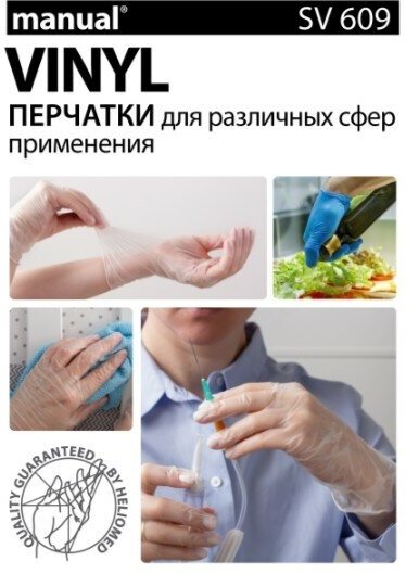 Перчатки виниловые смотровые Heliomed MANUAL SV609, SV609-02, цвет: прозрачный, размер M, 100 шт. (50 пар)