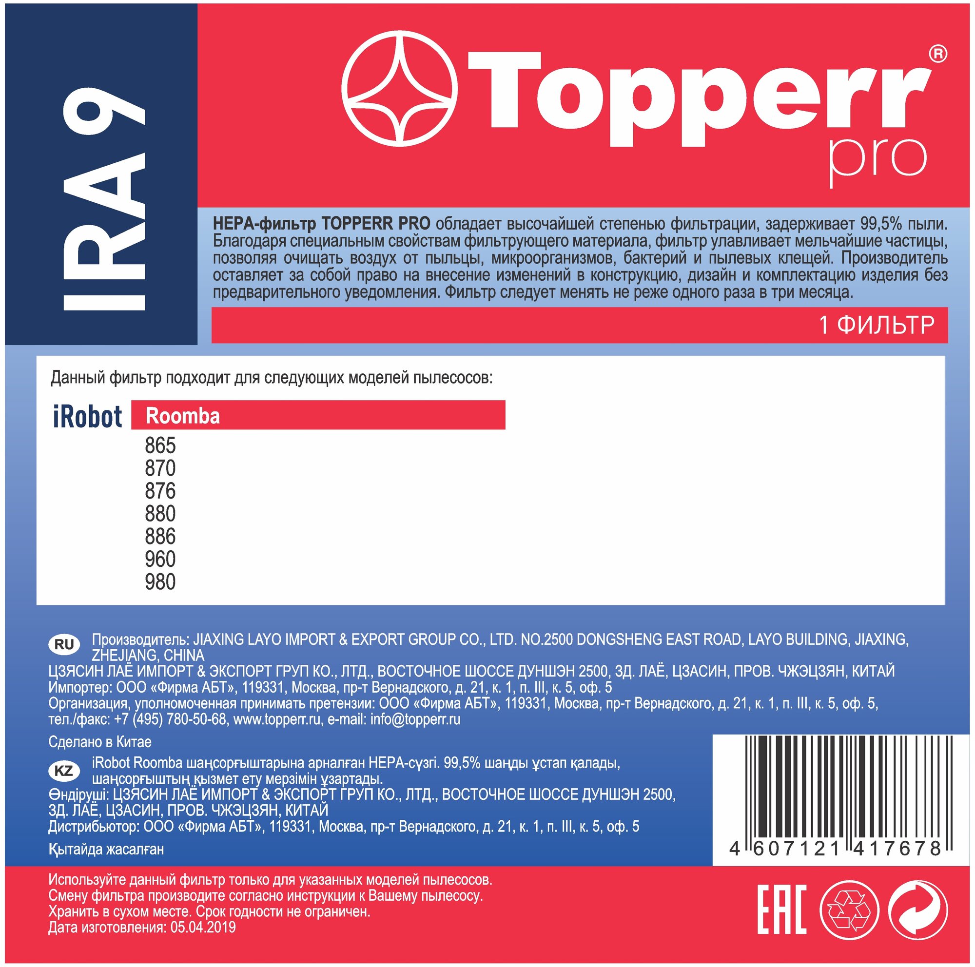 Фильтр Hepa Topperr IRA9 для для пылесосов iRobot Roomba