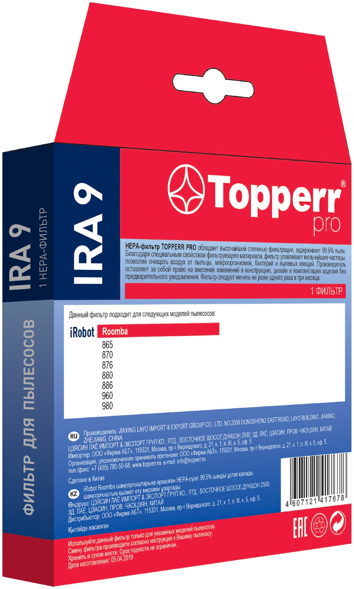 Topperr Hepa-фильтр для для пылесосов iRobot Roomba (800-900 серия), 1 шт., IRA9