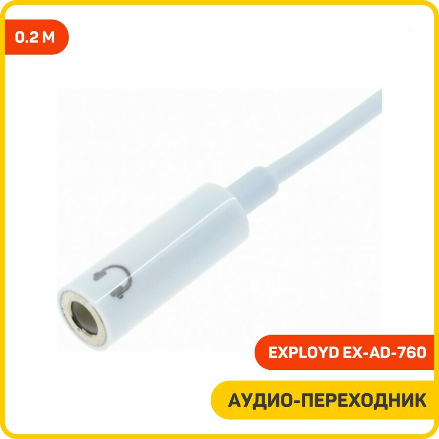 Аудио-переходник (адаптер) Exployd EX-AD-760 3.5 мм-Lightning, 0.2 м, белый информация: