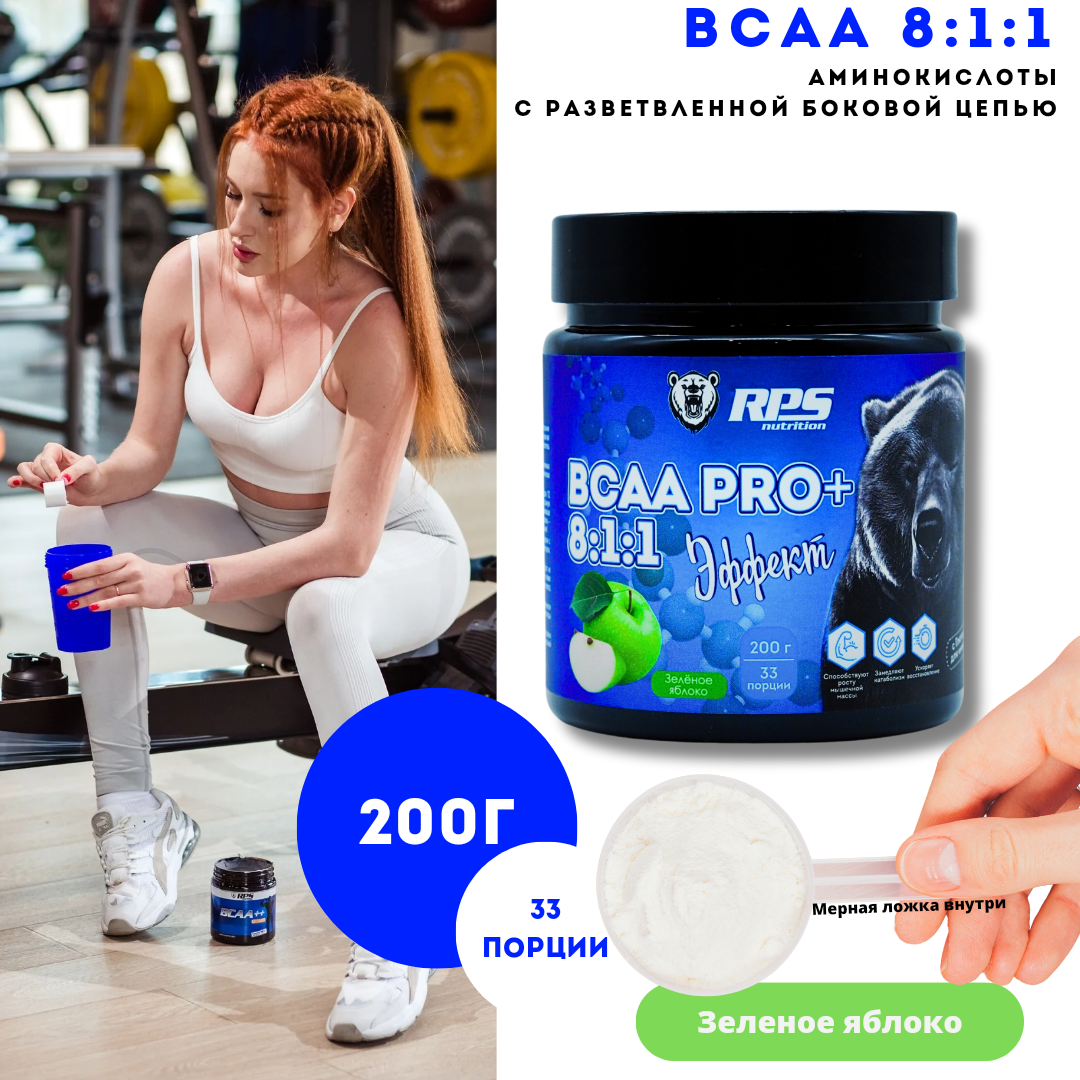 10 цен на BCAA (8:1:1) RPS NUTRITION, Банка 200гр, Зеленое яблоко