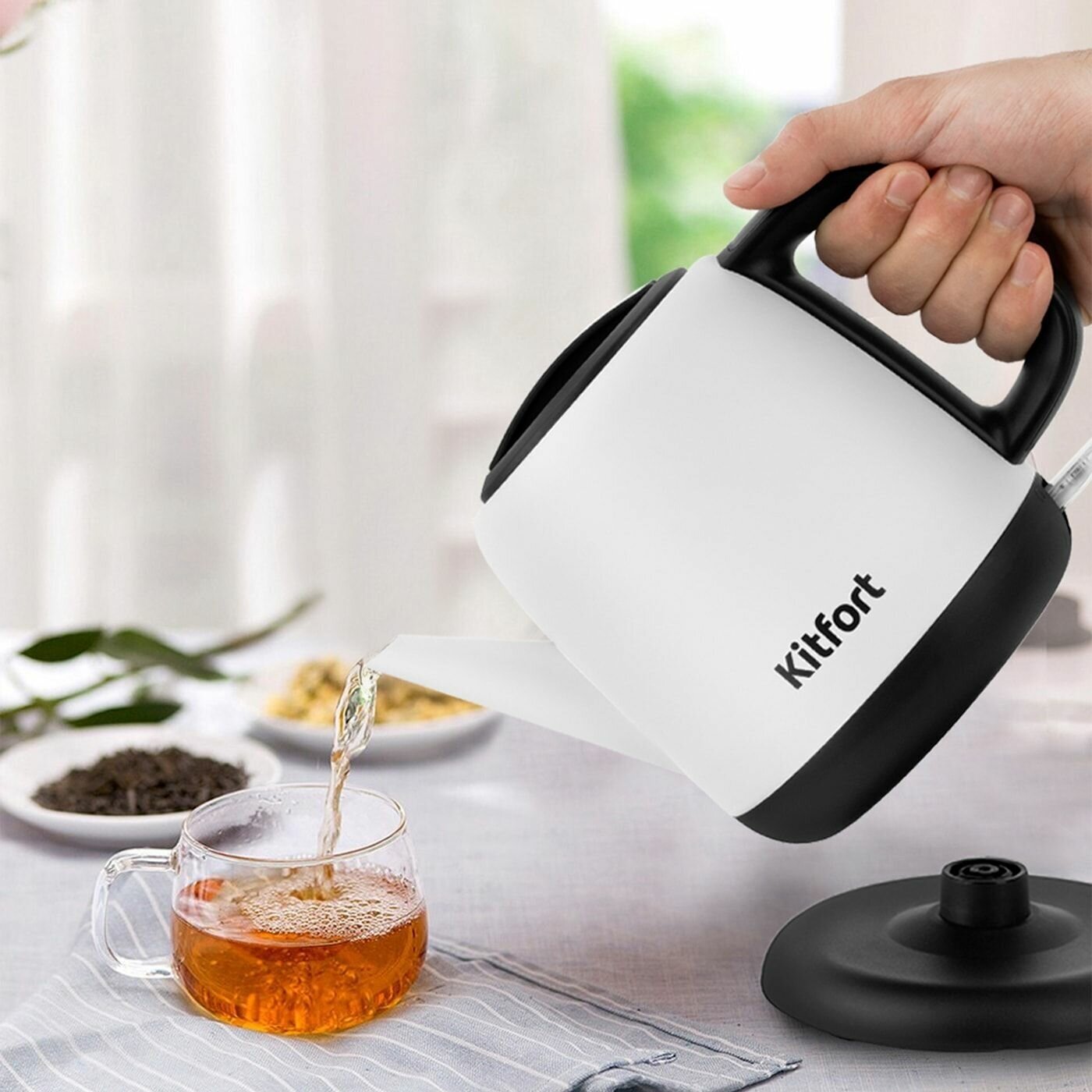 Чайник электрический KITFORT KT-6112, 1630Вт, белый и черный