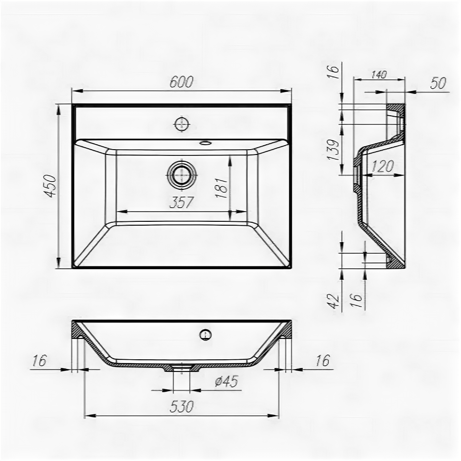 | Число размеченных отверстий под смеситель | отсутствуют |