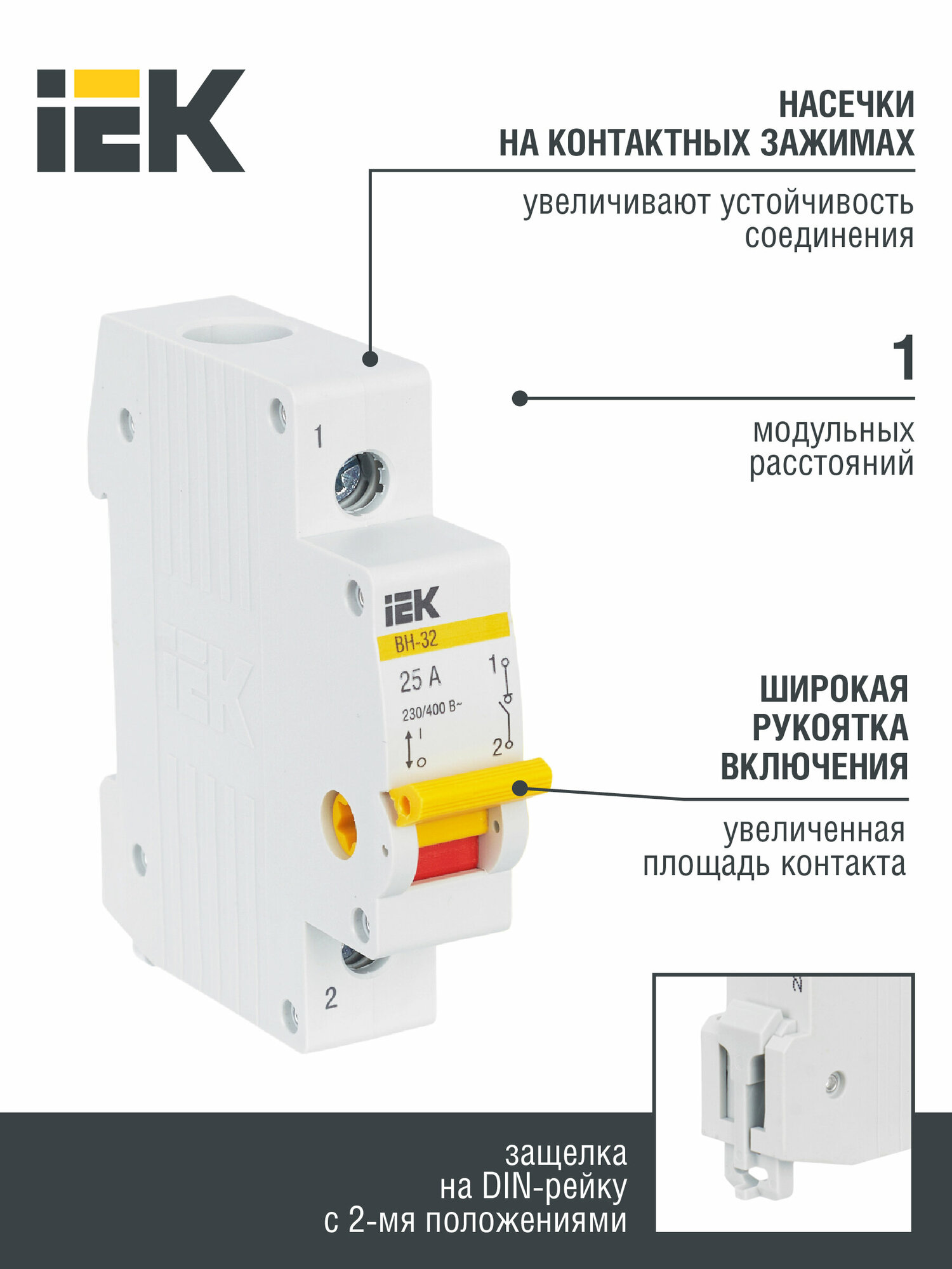 Выключатель нагрузки однополюсный IEK ВН-32 1P, 25А информация: