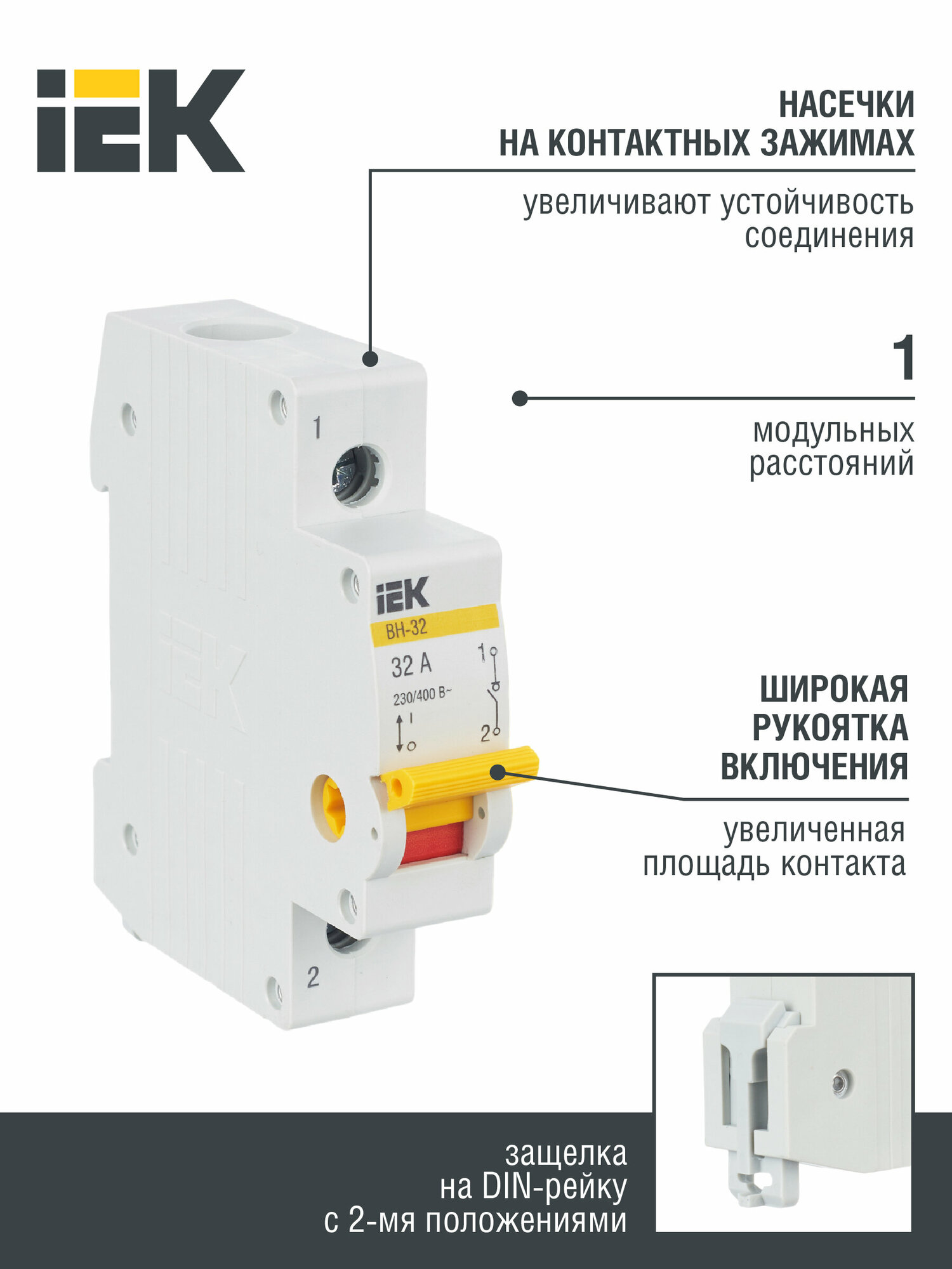 Выключатель нагрузки однополюсный IEK ВН-32 1P, 32А информация: