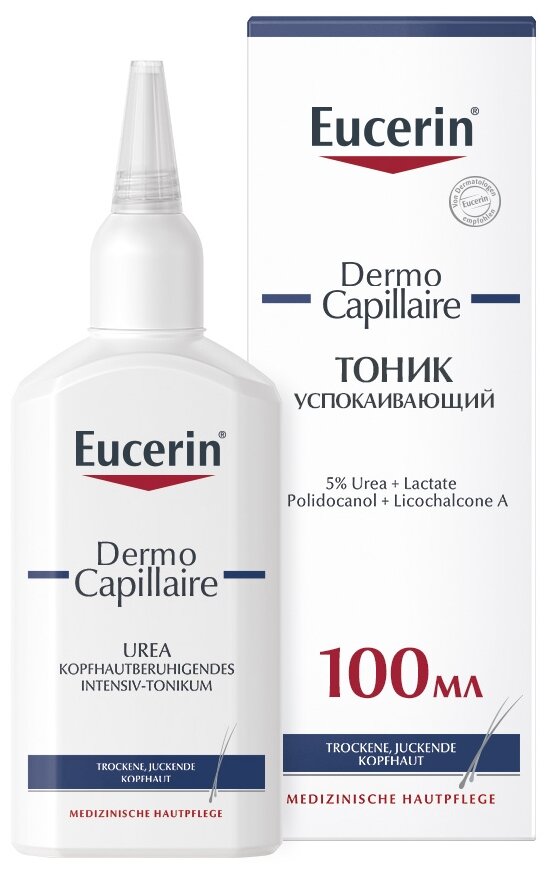 10 цен на Eucerin Тоник для кожи головы успокаивающий Dermo Capillaire Calming Urea Scalp Treatment, 100 мл, бутылка
