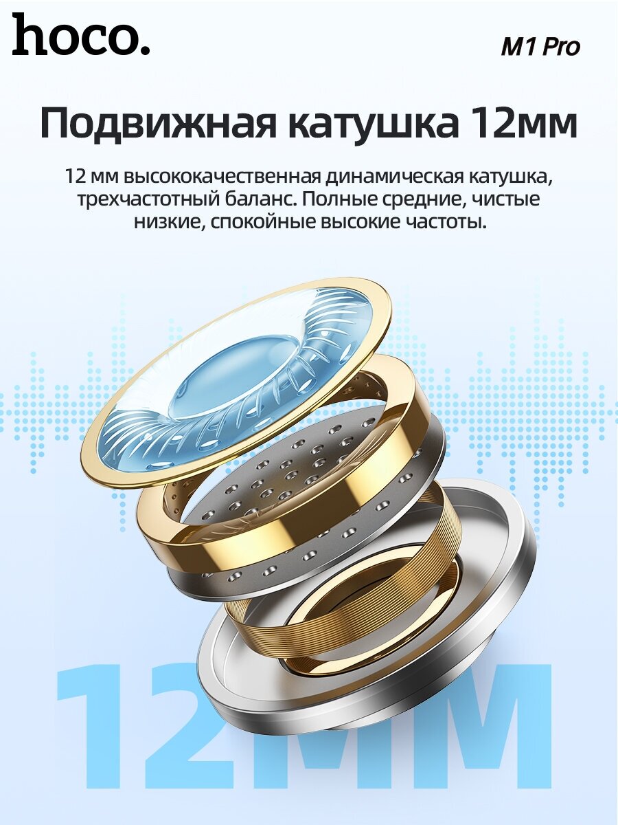 10 цен на Проводные наушники вкладыши HOCO M1 Pro, AUX AUX Jack 3.5mm, 1.2 м, белый