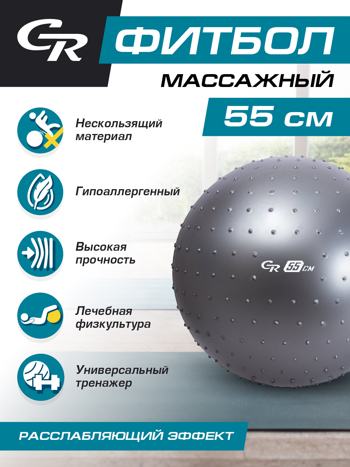 Отзывы на Мяч гимнастический массажный, фитбол, для фитнеса, для занятий спортом, диаметр 55 см, ПВХ, серебристый