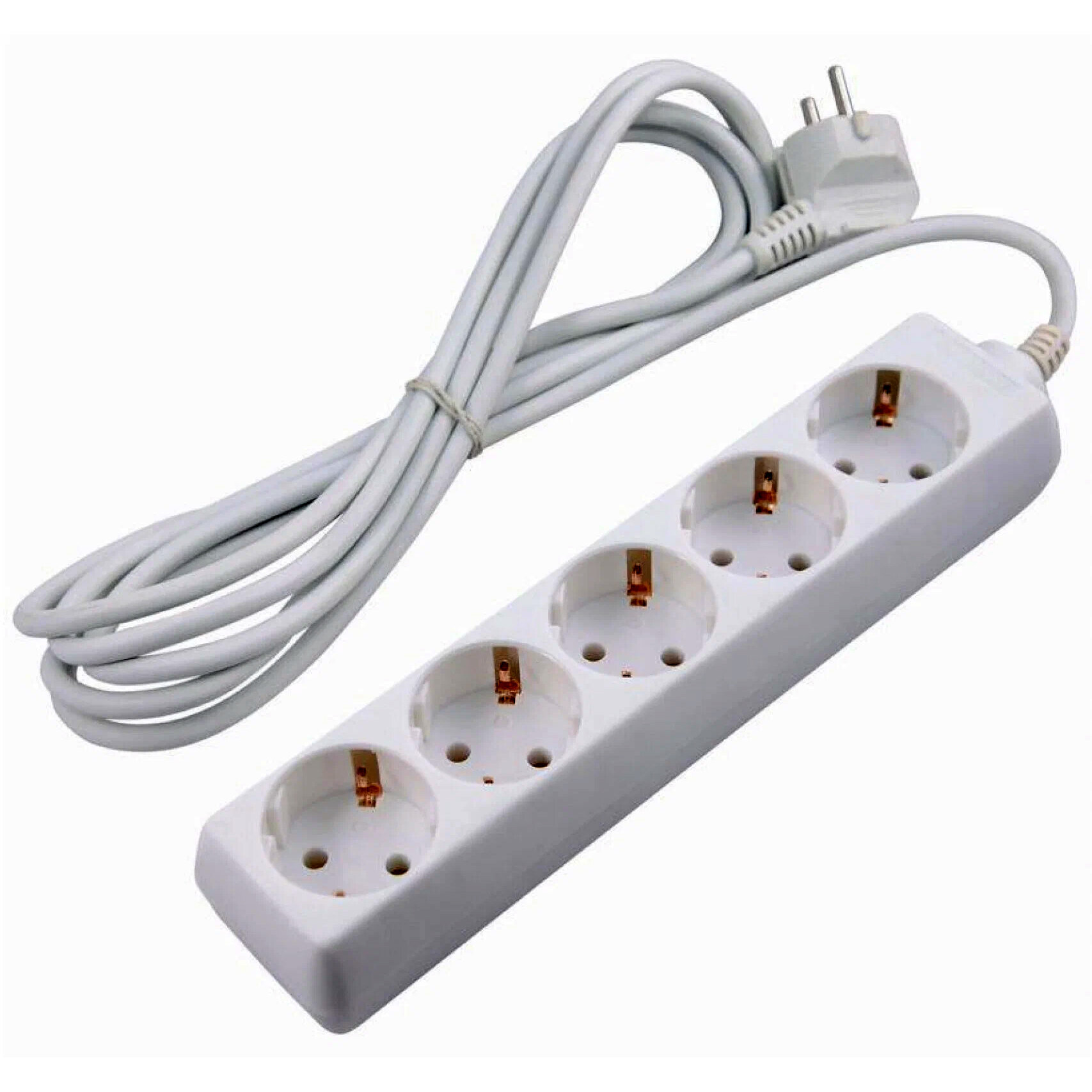 Удлинитель бытовой Volsten 9319, с заземлением, 5 розеток, 3 м, 10 А, 2200 Вт, белый