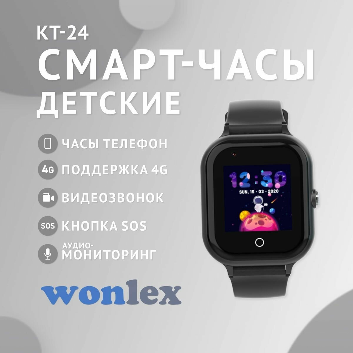 Умные часы для детей Wonlex Smart Baby Watch KT24 4G (LTE) с сим картой, функцией телефона, GPS трекером, камерой, кнопкой SOS, видеозвонком. Черный