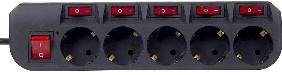 Сетевой фильтр BURO 500SH-5-SW-B черный, 5гн, 5м, индивидуальные выключатели розеток