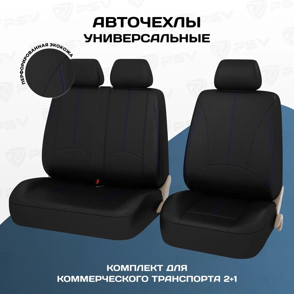 10 цен на Чехлы для коммерческого транспорта универсальные PSV Imperial Next TRANSIT (Черный/отстрочка синяя), экокожа