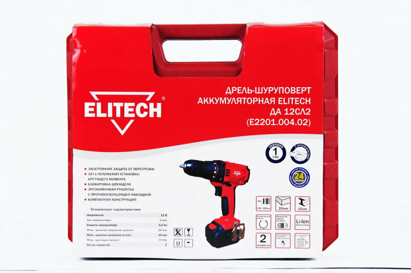 Аккумуляторная дрель-шуруповерт Elitech ДА12 СЛ2 информация: