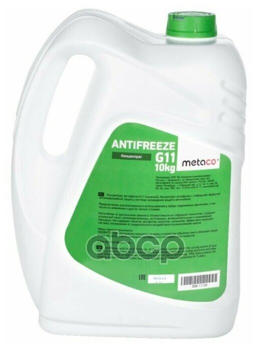 METACO 99811130 Антифриз концентрат Metaco зеленый G11 10л