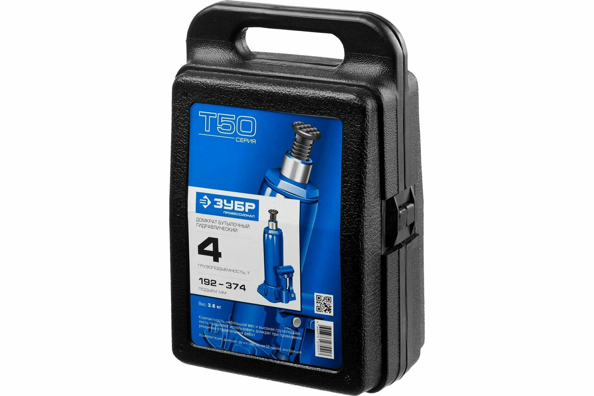 Домкрат 4т, 192-374мм, бутылочный гидравлический, ЗУБР информация: