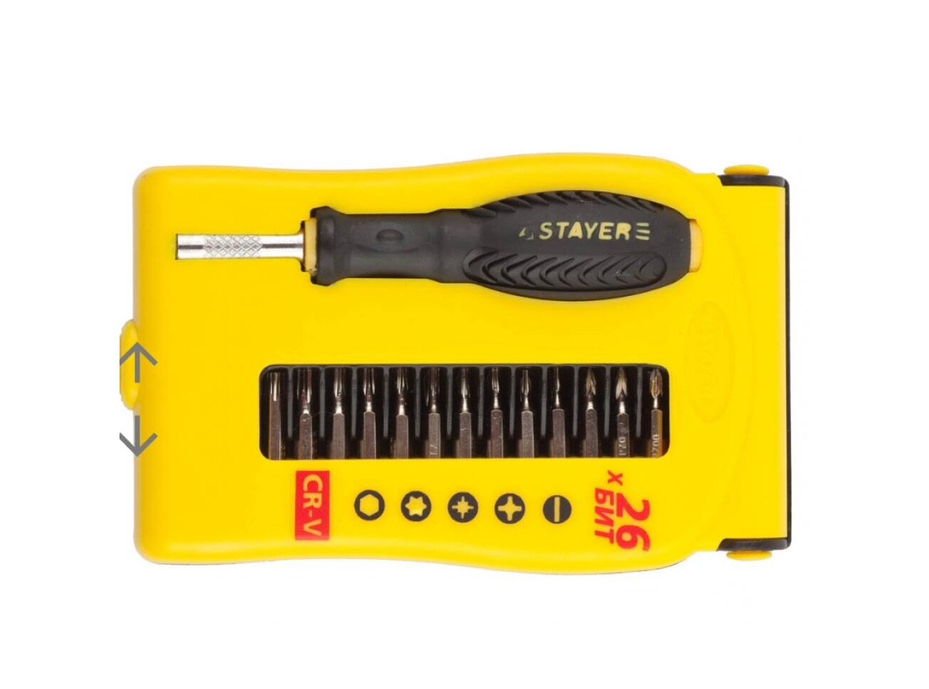 Отзывы на Screwdriver / Отвёртка-битодержатель для точных работ STAYER 26 предметов 25614-H28