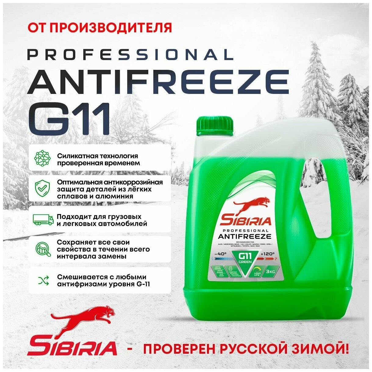 Антифриз SIBIRIA G11 зеленый 3л. информация: