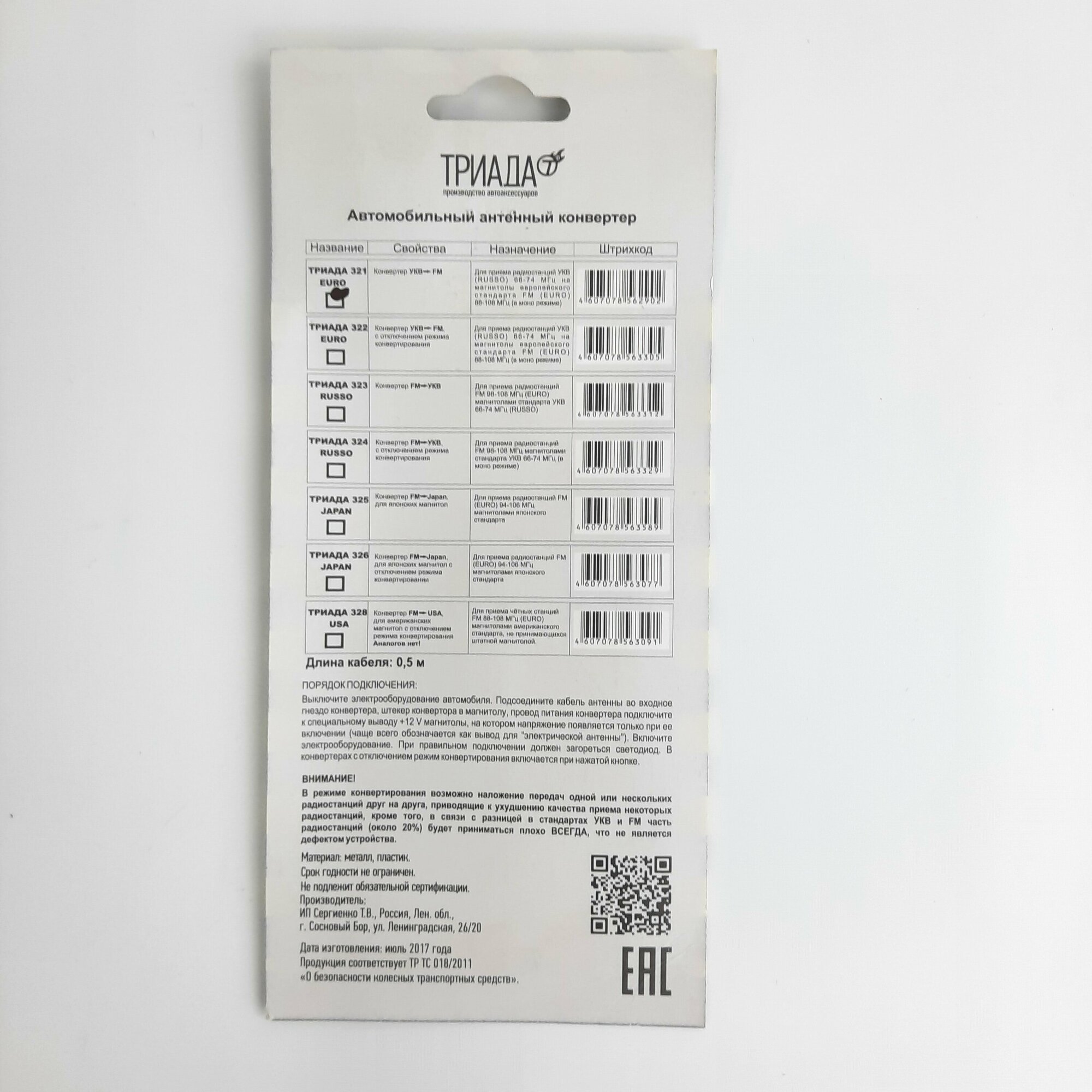 Антенный конвертер автомобильный Триада-321 EURO информация: