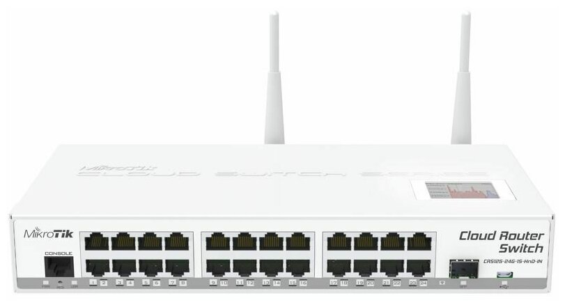 Отзывы на MikroTik Cloud Router Switch 125-24G-1S-IN with Atheros AR9344 CPU, 128MB RAM, 24xGigabit LAN, 1xSFP, RouterOS L5, LCD panel, 2.4Ghz 802.11b/g/n wirel