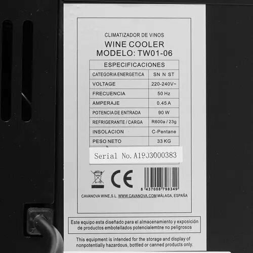 Винный шкаф компрессорный для открытого хранения бутылок Cavanova TW01-06 информация: