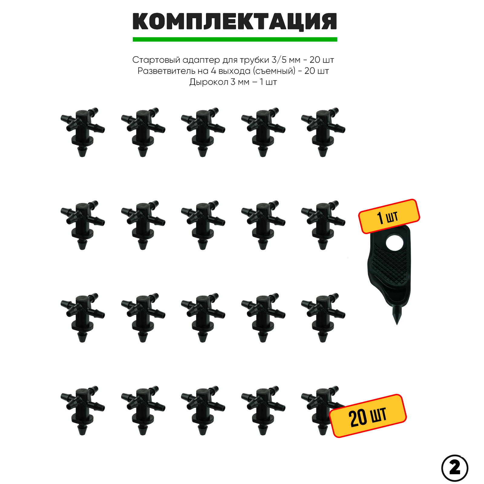10 цен на Стартовый разветвитель на 4 выхода для трубки ПВХ 3/5мм (20шт+дырокол)