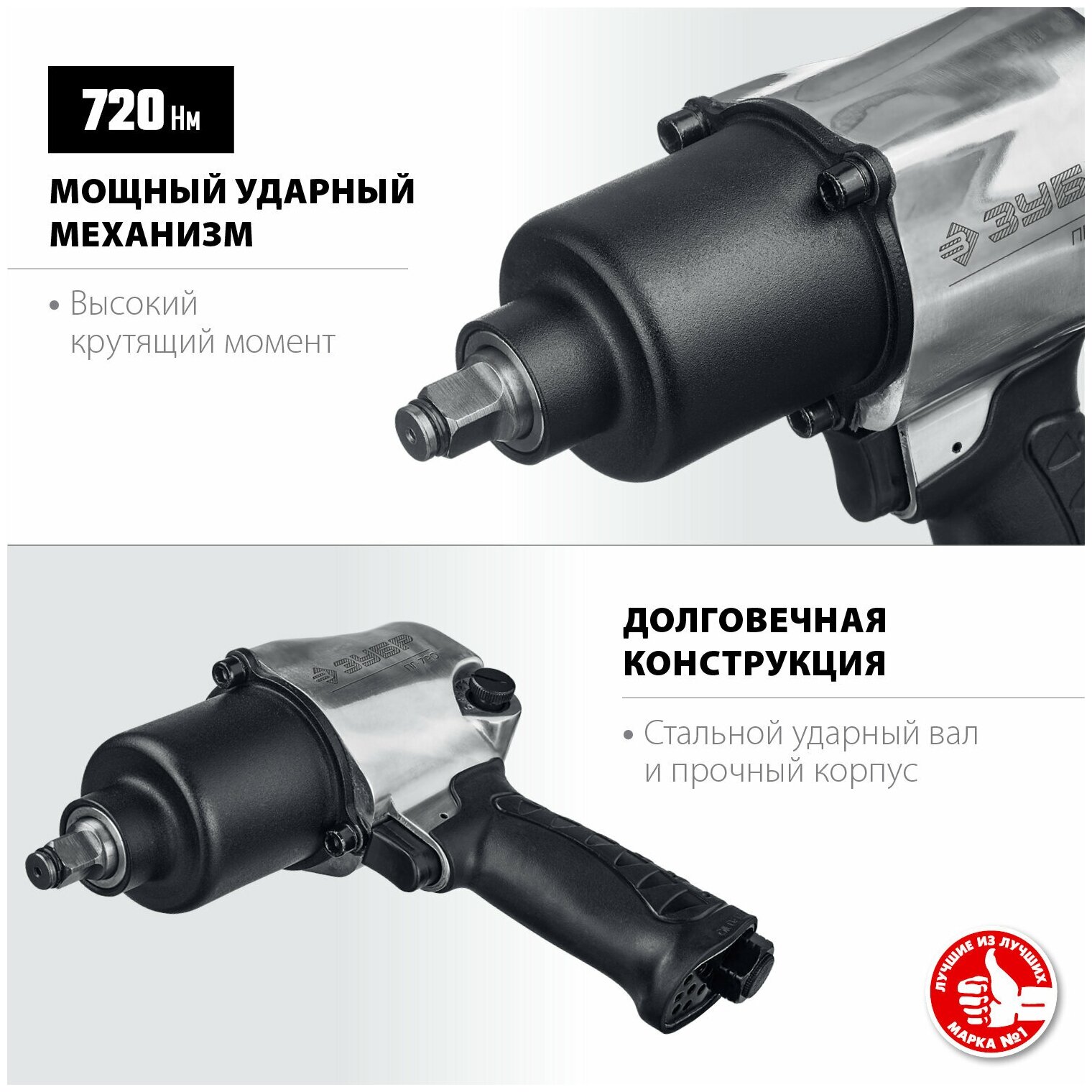 Ударный пневматический гайковерт ЗУБР Профессионал ПГ-720 1/2, 720 Нм информация: