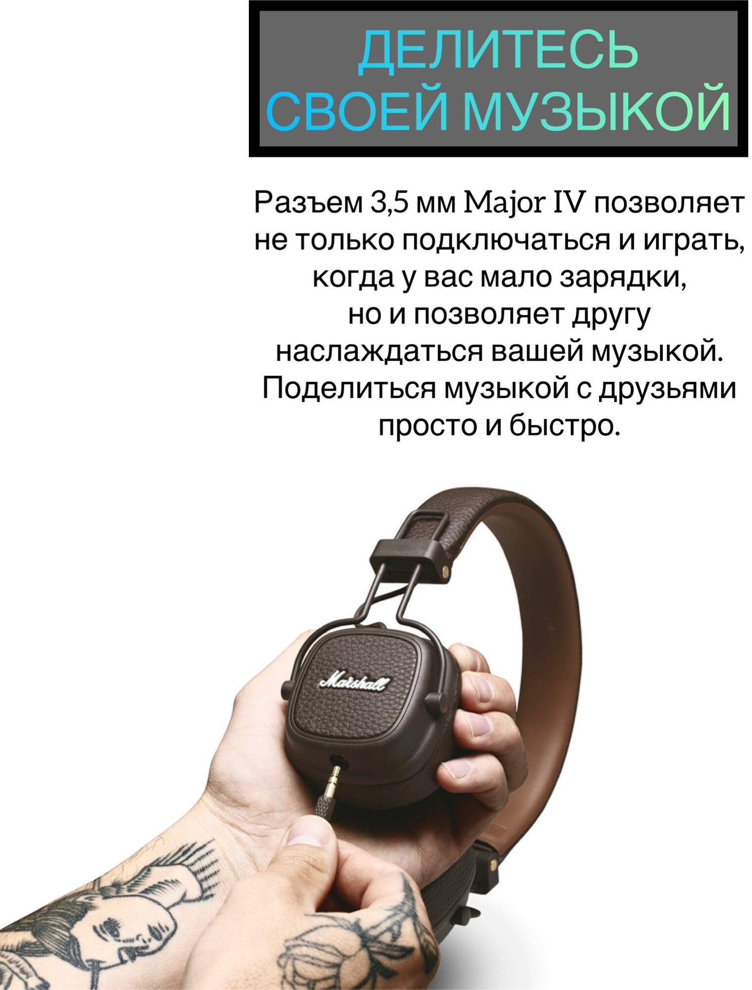Беспроводные наушники Marshall Major IV, mini jack 3.5 mm, коричневый информация: