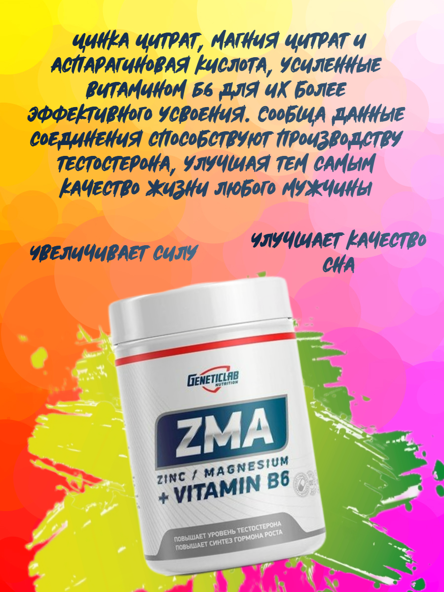 Тестобустер ZMA Geneticlab 60 caps информация: