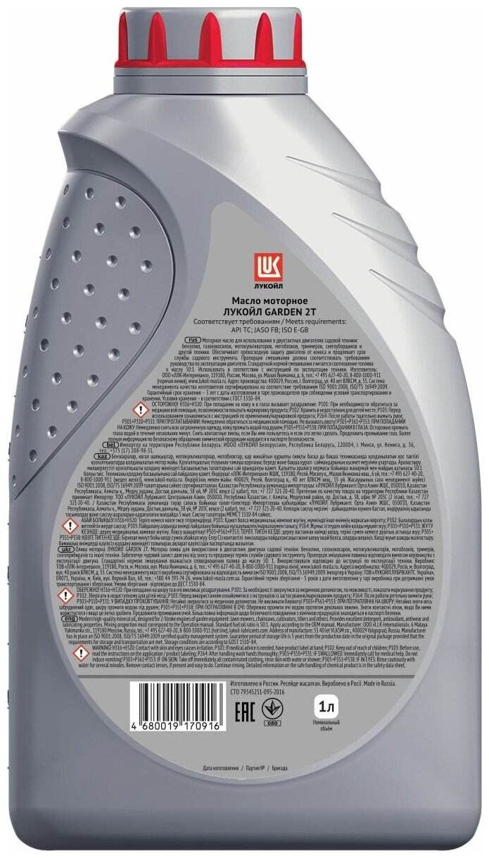 Моторное масло ЛУКОЙЛ GARDEN 2Т, 1 л