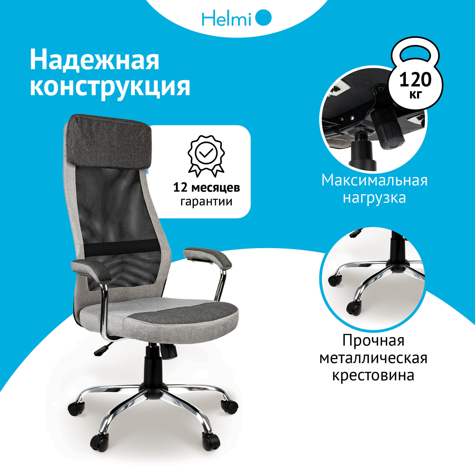 Кресло компьютерное офисное Helmi HL-E41 "Stylish" для руководителя, ткань и сетка 13 376 ₽