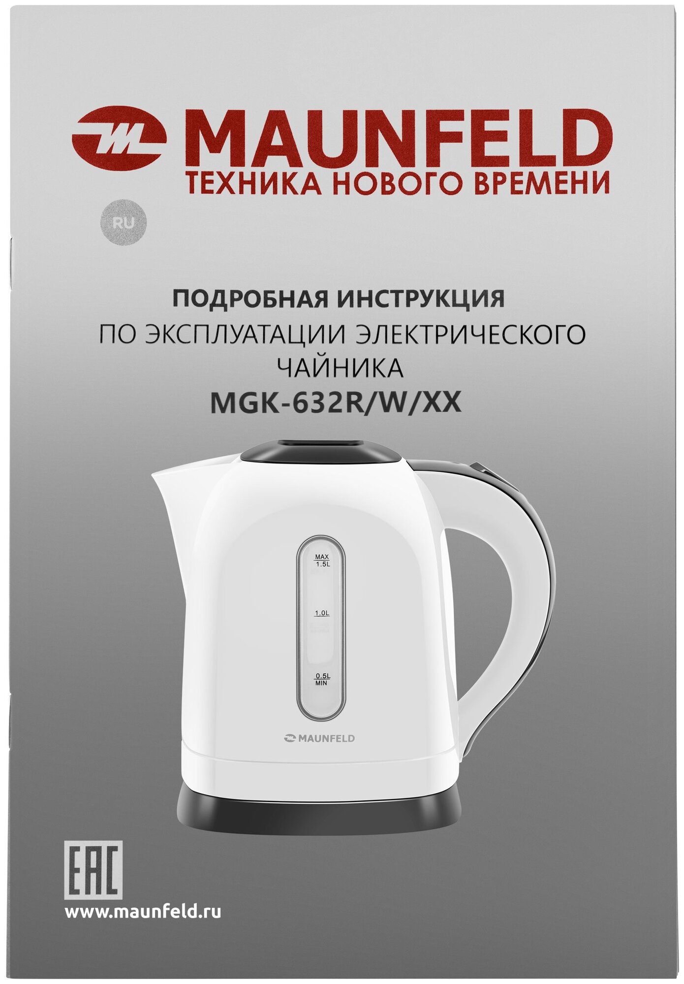 Чайник Maunfeld Mgk-632w, 1,5 л, 2200Вт, белый .