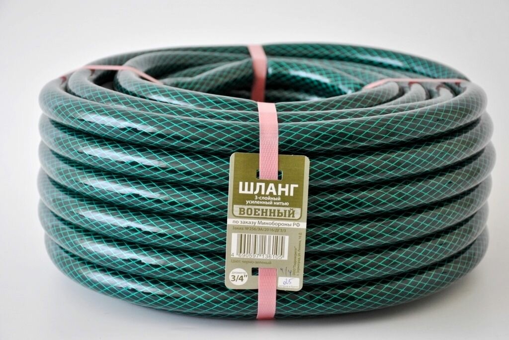 Шланг поливочный 25М d3/4 (19мм) армированный непрозрачный зеленый военный гидроагрегат информация: