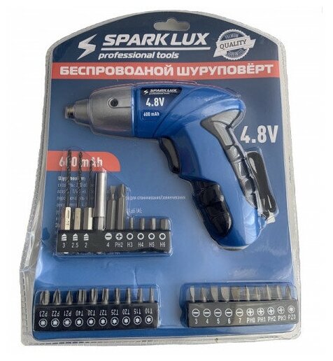 Шуруповерт беспроводной Spark Lux, 4.8V, 600 mAh, 30 бит и насадок информация: