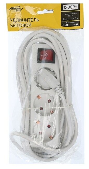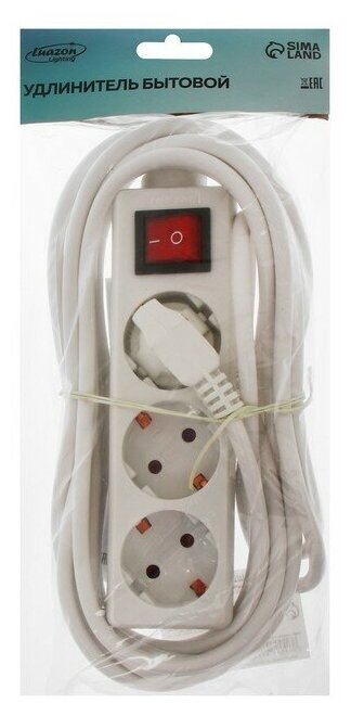 Отзывы на Luazon Lighting Удлинитель Luazon Lighting, 3 розетки, 5 м, 6 А, 1300 Вт, 3х0.75 мм2, с з/к, с выкл., Б