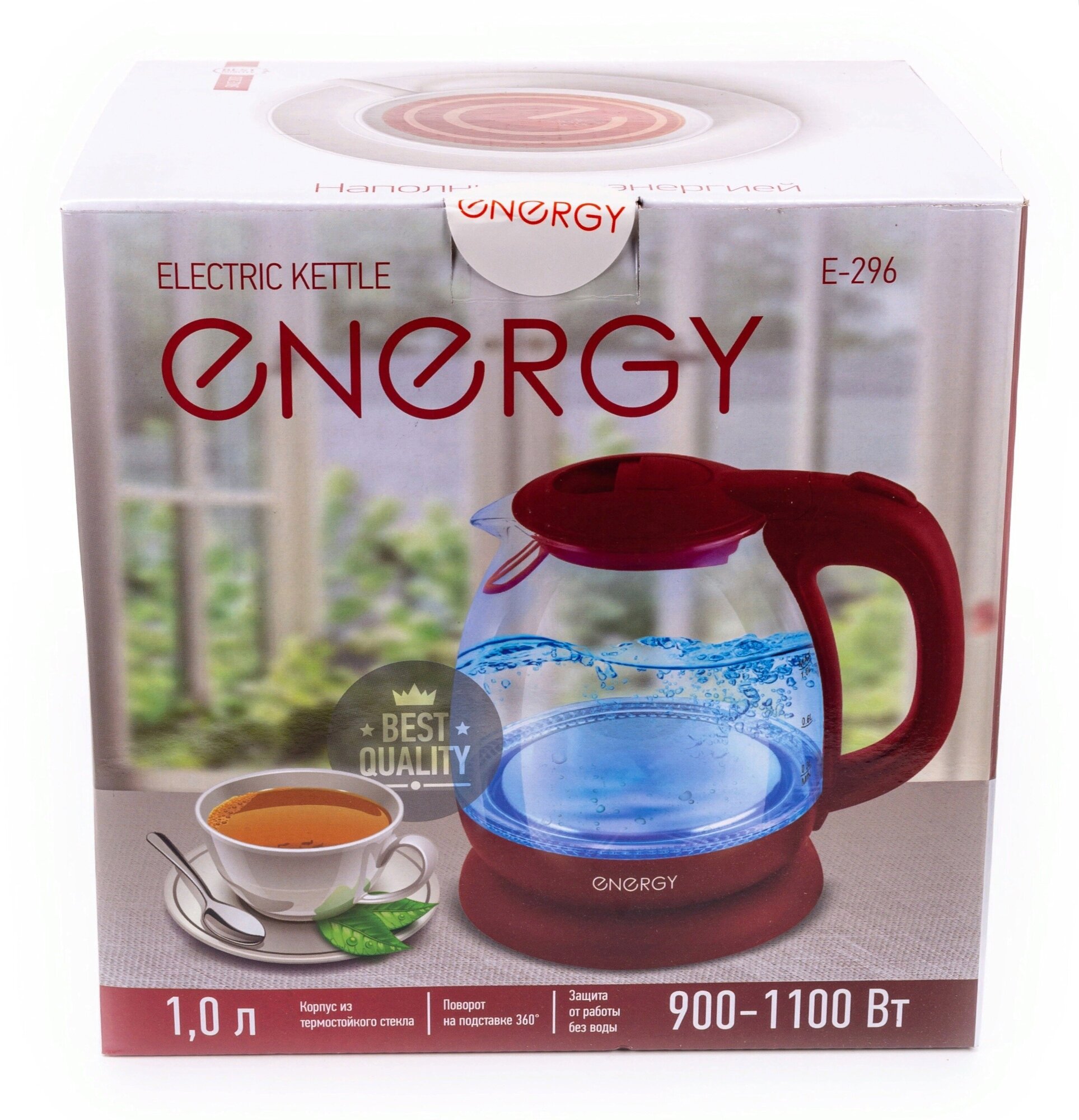 Чайник электрический Energy E-296 1 л, стекло, пластик, красный