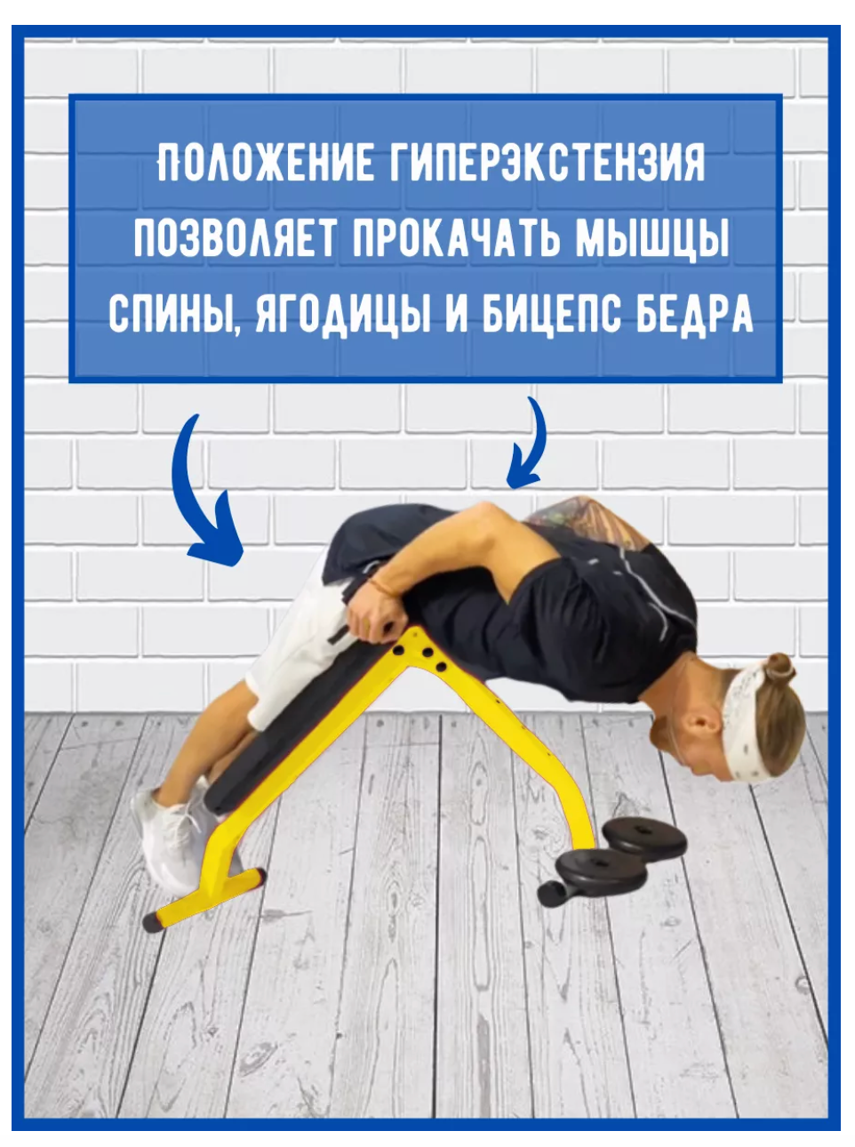 Скамья 2в1. Пресс + Гиперэкстензия (желтая) информация: